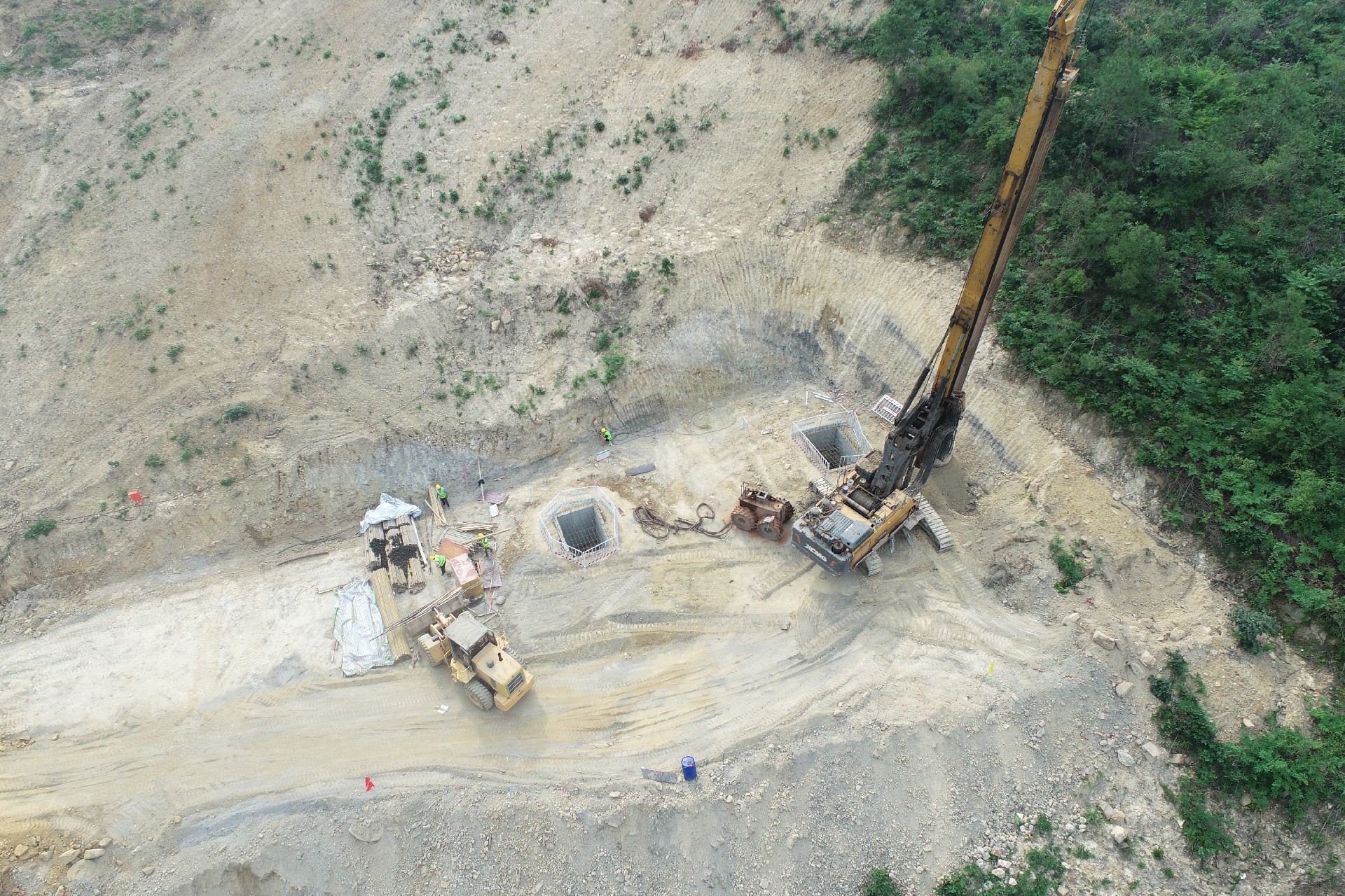 截至目前項目已完成項目駐地建設、進場便道、朱家埡停車區表土清理及部分抗滑樁施工。