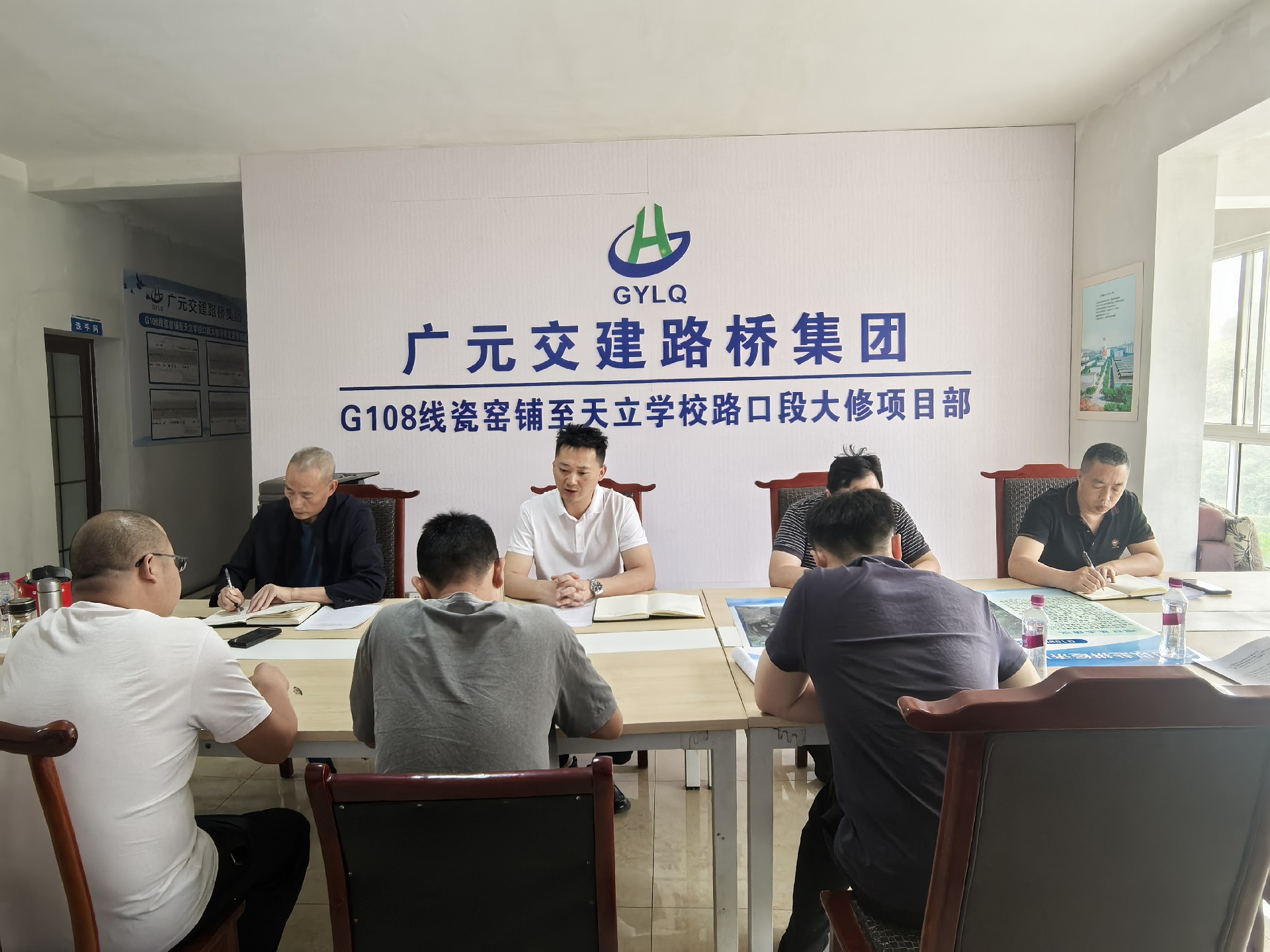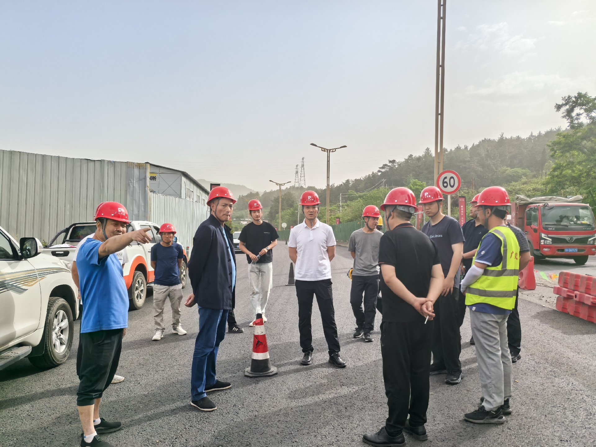 5月9日,總經理黎強在G108項目現場主持召開揚塵治理專題會。